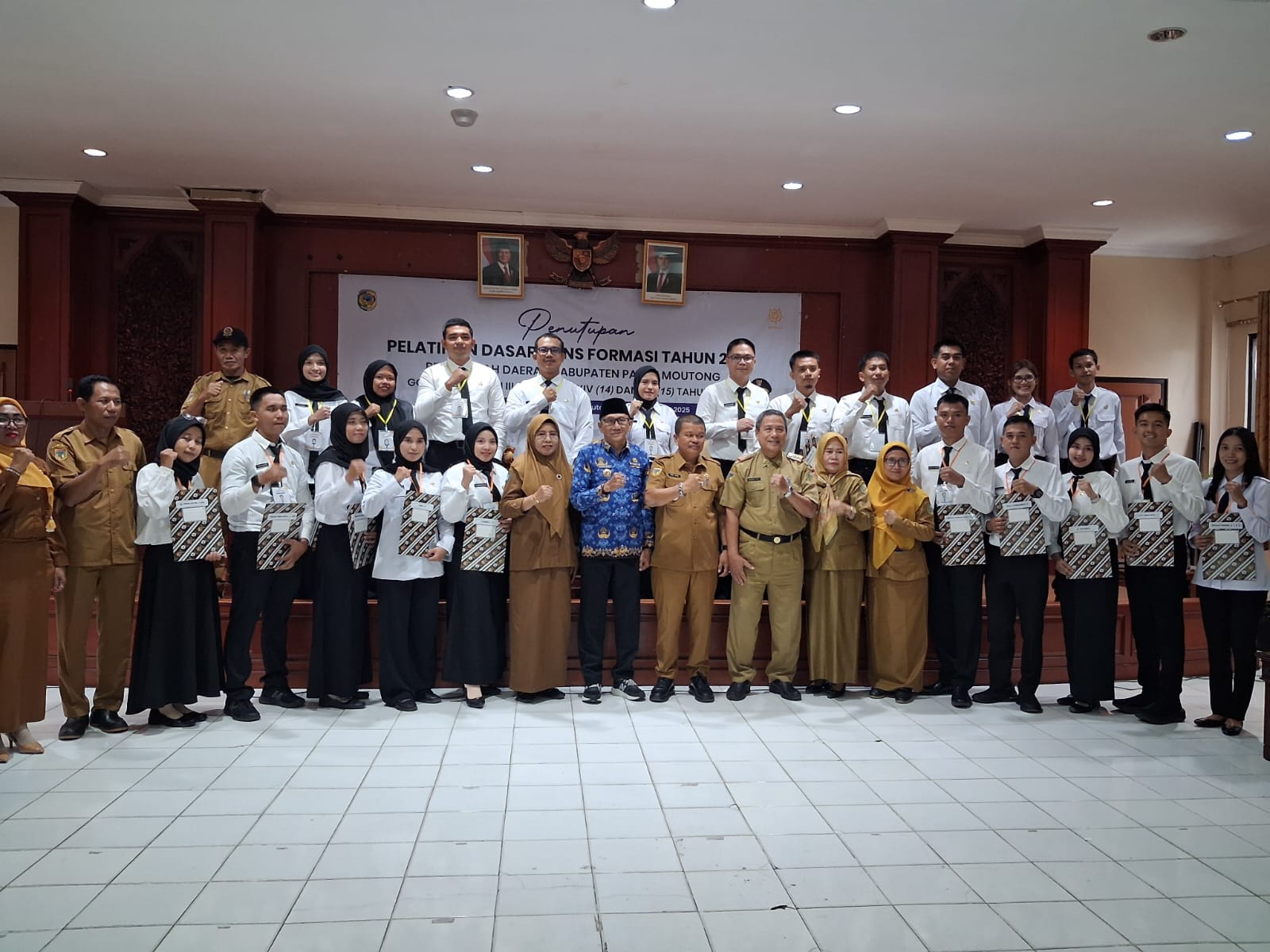 Momentum penutupan ditandai dengan pelepasan atribut kartu peserta secara simbolis oleh Wakil Bupati, disaksikan Kepala BPSDM Provinsi Sulawesi Tengah, Dr. Moh. Yasin Baculum, S.Sos., MT., serta Kepala BKPSDM Parigi Moutong, Mahmud M. Tandju, SH., MH.