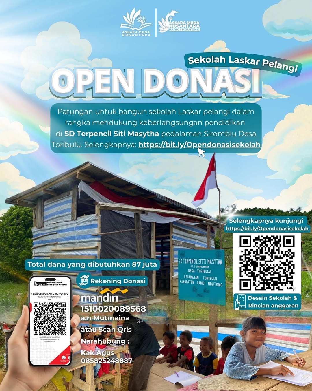 Relawan Amura Parigi Moutong, Bella Safira, menyebut bahwa donasi yang dibuka bukan hanya soal penggalangan dana, tetapi panggilan mendesak untuk memastikan pendidikan anak-anak pedalaman tetap berjalan.