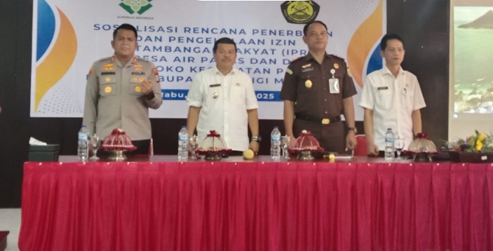 Sosialisasi ini digelar oleh Pemerintah Provinsi Sulawesi Tengah melalui Dinas Energi dan Sumber Daya Mineral (ESDM), bertempat di Hotel Oktaria, Kecamatan Parigi, pada Rabu (1/10/2025). Kegiatan tersebut turut dihadiri unsur Forkopimda Kabupaten Parigi Moutong, sejumlah OPD teknis, serta perwakilan kelompok koperasi penambang dari kedua desa calon penerima izin.