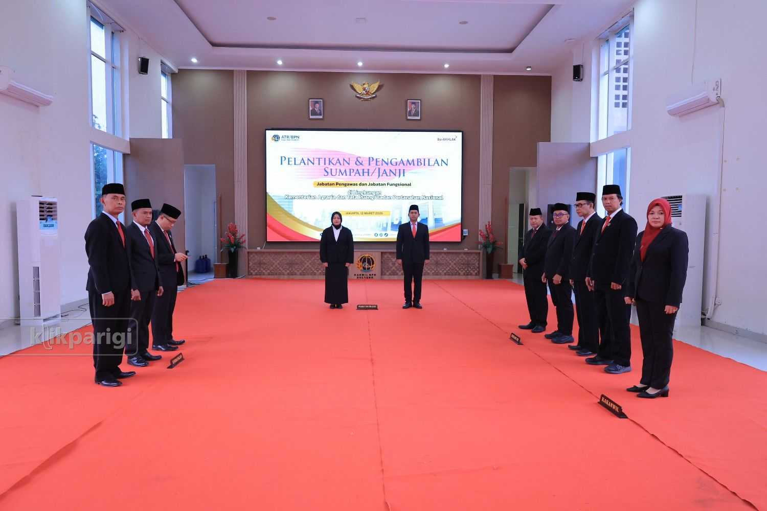 KLIKPARIGI.ID – Kantor Wilayah Badan Pertanahan Nasional (BPN) Provinsi Sulawesi Tengah turut berpartisipasi dalam kegiatan pelantikan dan pengambilan sumpah/janji jabatan fungsional bagi Aparatur Sipil Negara di lingkungan Kementerian Agraria dan Tata Ruang/Badan Pertanahan Nasional (ATR/BPN). Kegiatan tersebut dipusatkan di Aula Prona Kementerian ATR/BPN, Jakarta, dan diikuti secara virtual oleh jajaran Kanwil BPN Sulteng dari Aula Kaledo.