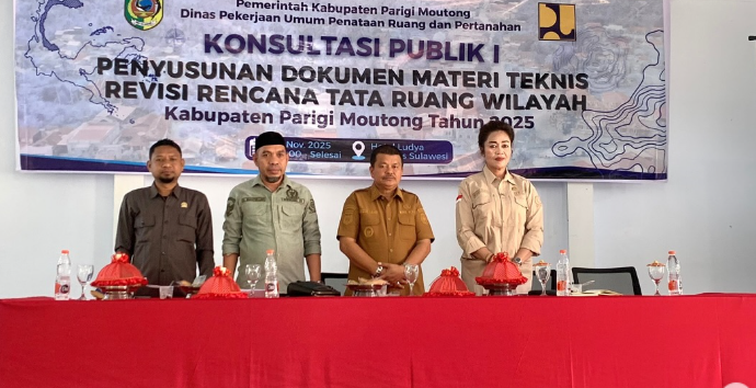 KLIKPARIGI.ID – Pemerintah Kabupaten Parigi Moutong melalui Dinas Pekerjaan Umum, Penataan Ruang, dan Pertanahan (PUPRP) mengawali proses penyusunan Revisi Rencana Tata Ruang Wilayah (RTRW) dengan menggelar Konsultasi Publik Tahap I. Kegiatan ini berlangsung di Aula Hotel Ludya, Selasa (18/11/2025).